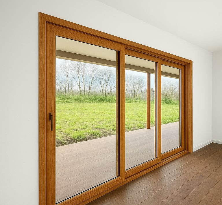 Ventana Corrediza Corredera Balconera 4000 x 2000 PVC Simil Madera con DVH 3+3/12/3+3