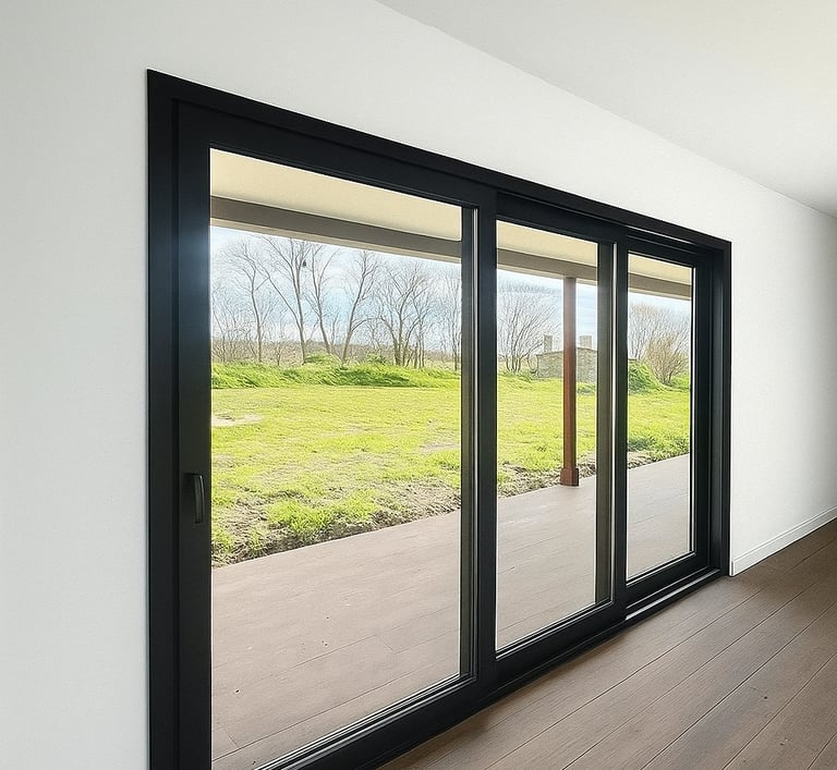 Ventana Corrediza Corredera Balconera 4000 x 2000 PVC Negro Jet Black Microtexturado con DVH 3+3/12/3+3