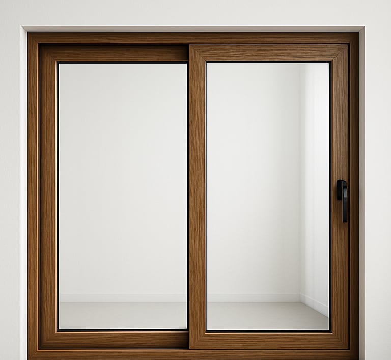 Ventana Corrediza Corredera Balconera 2000 x 2000 PVC Simil Madera con DVH 3+3/12/3+3