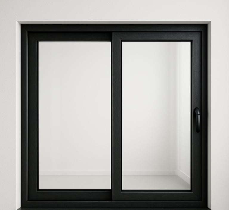 Ventana Corrediza 1500 x 1500 PVC Negro Jet Black microtexturado con DVH