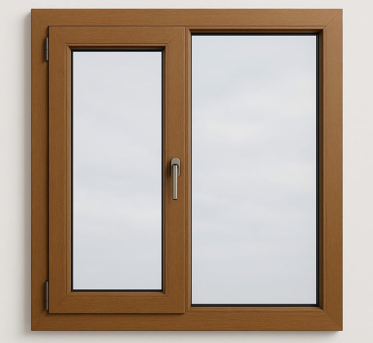 Ventana Corrediza 1500 x 1500 PVC Simil Madera con DVH